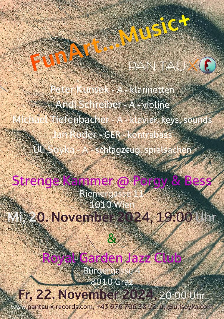 ...wir freuen uns ganz besonders, mit einem Teil unserer Konzertreihe "pantau-x-musik-hautnah 2024" in der "StrengenKammer" im Porgy&Bess Gast sein zu dürfen!